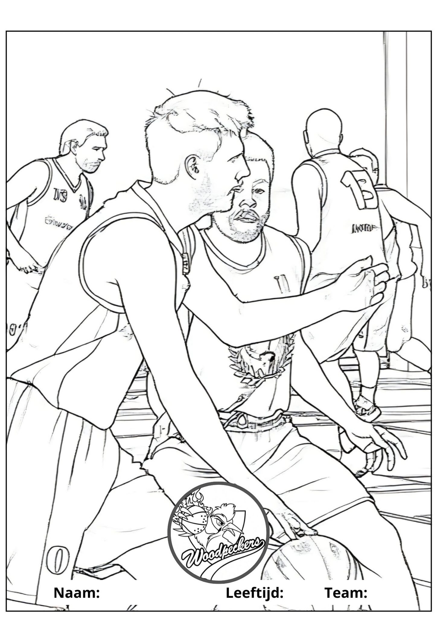 Herken je de personen op deze kleurplaten? Kijk maar goed want dit zijn niet zomaar basketballers.. het zijn allemaal echte Woodpeckers!