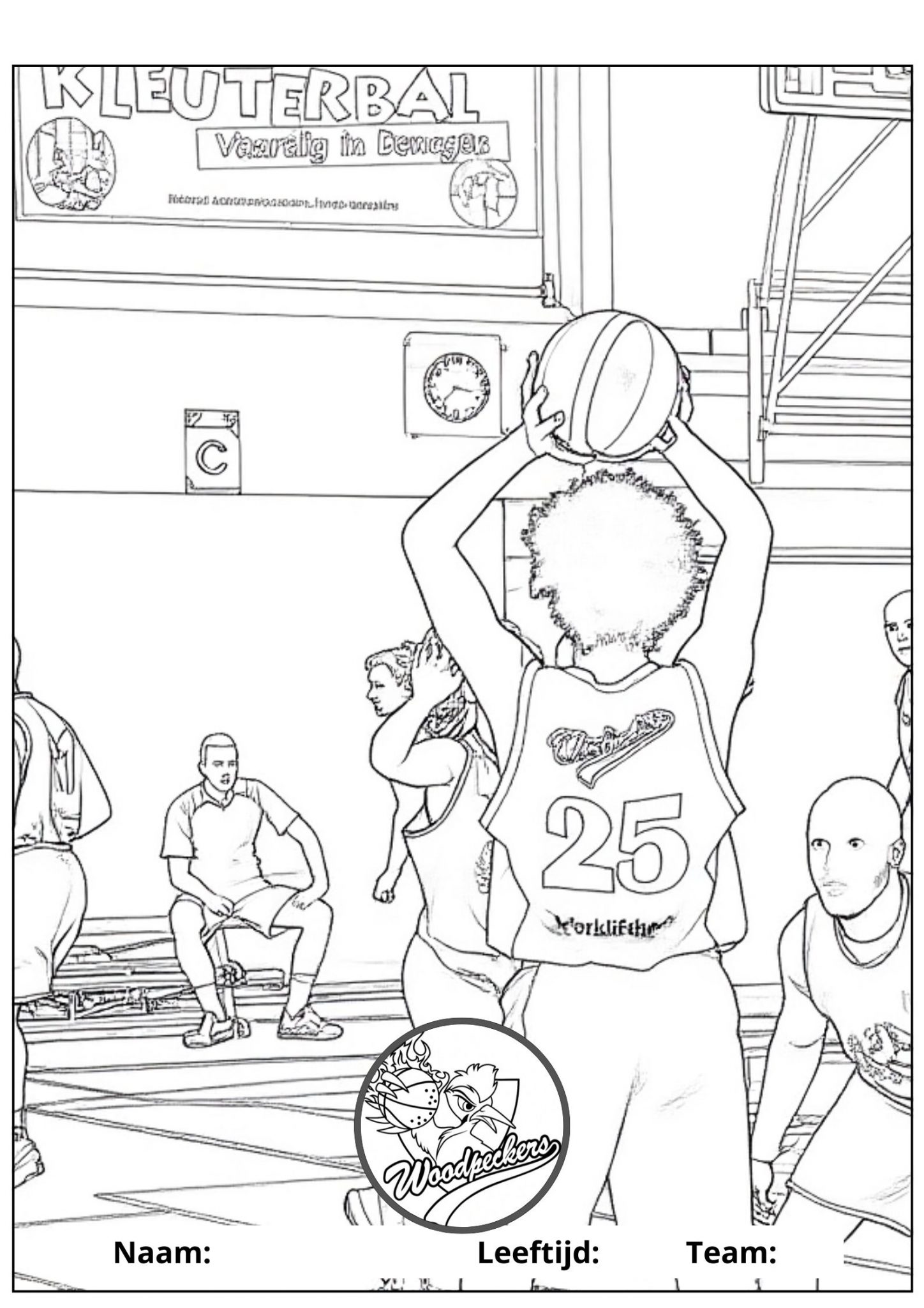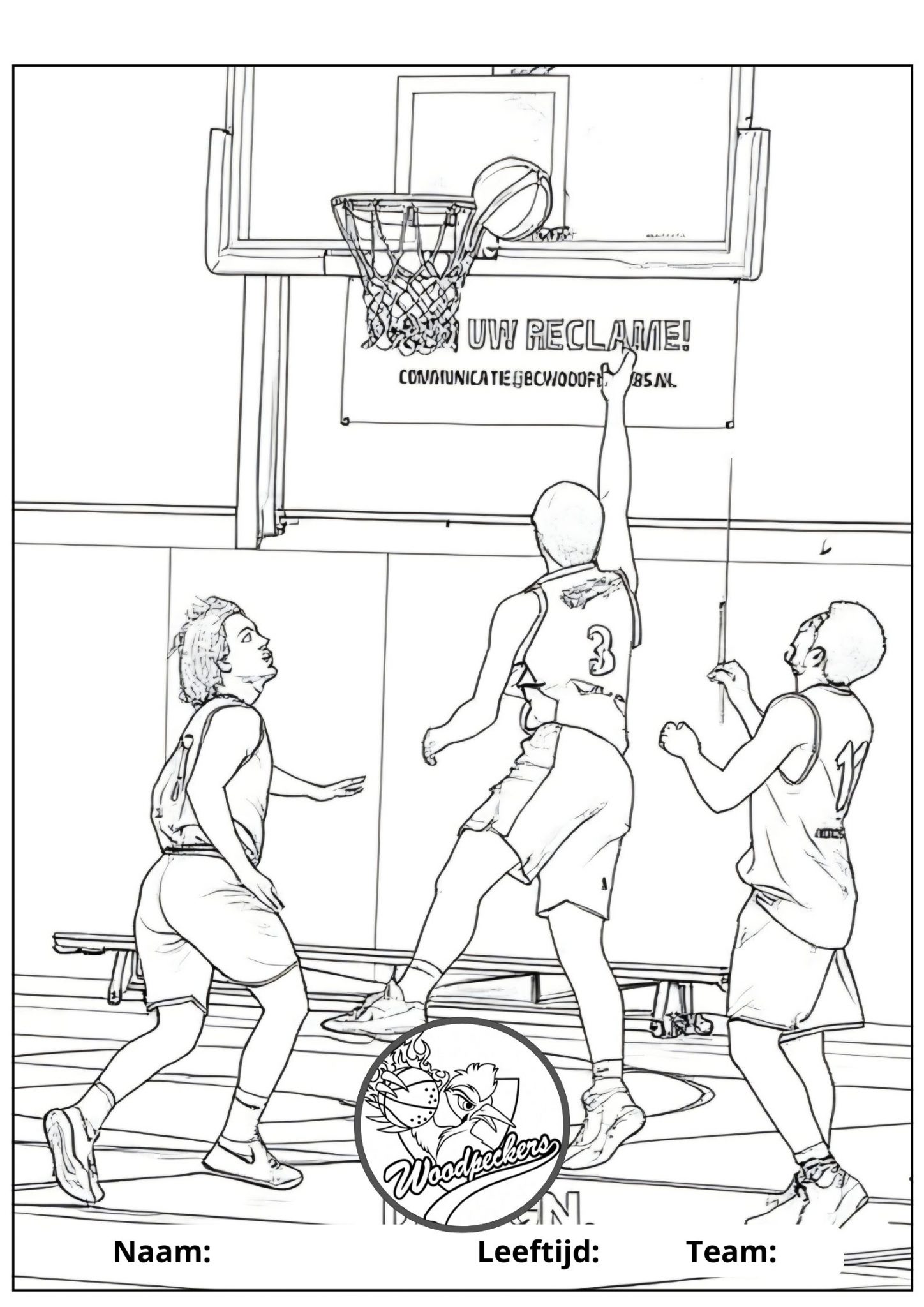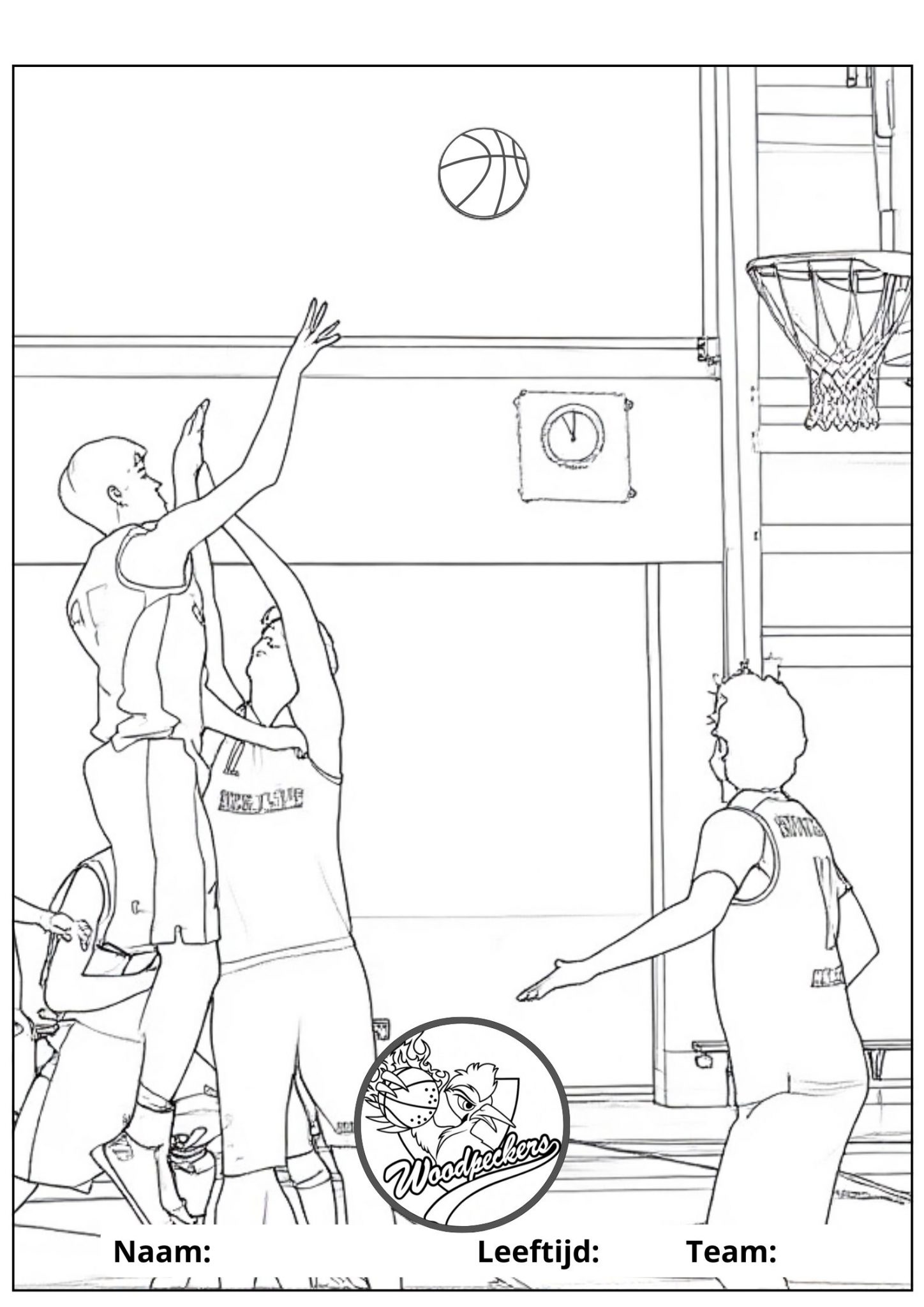 Kies, print en kleur jouw kleurplaat en lever deze op zaterdagochtend in bij Basketball'sCool of in het weekend bij de kantine. Dan hangen wij ze allemaal op, en maken we samen een Woodpecker-slinger op de tribune.