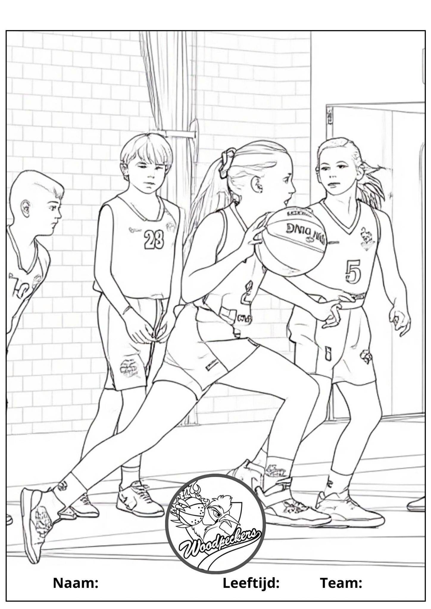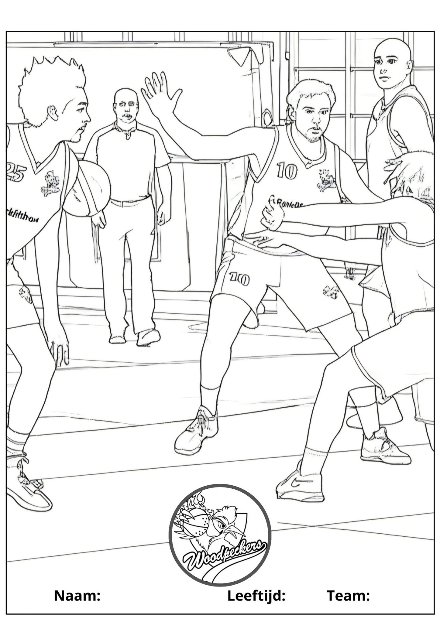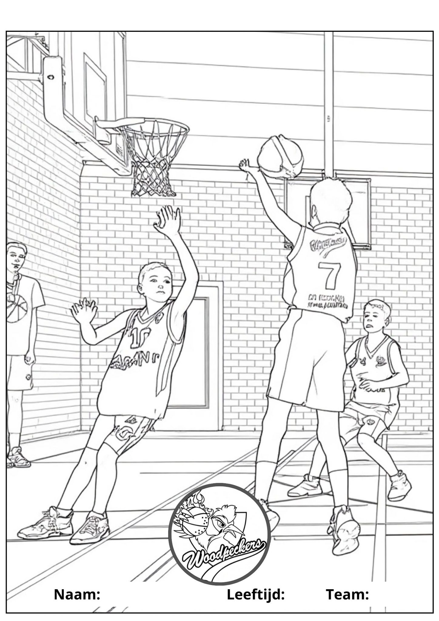 Kies, print en kleur jouw kleurplaat en lever deze op zaterdagochtend in bij Basketball'sCool of in het weekend bij de kantine. Dan hangen wij ze allemaal op, en maken we samen een Woodpecker-slinger op de tribune.
